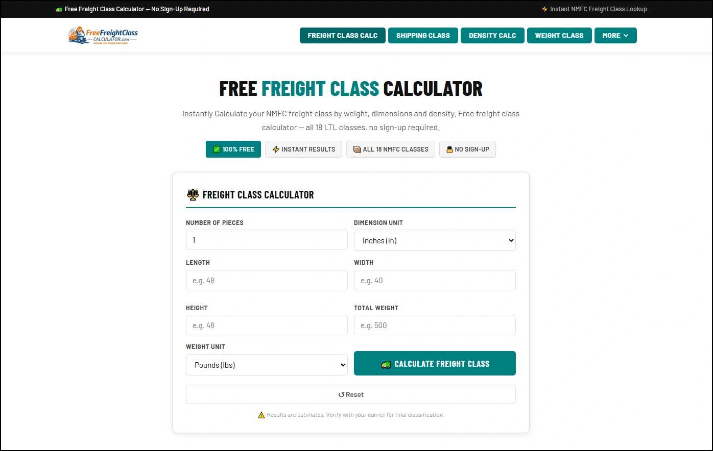 Using a dedicated platform like the freight class calculator offers a clear advantage over generic tools.